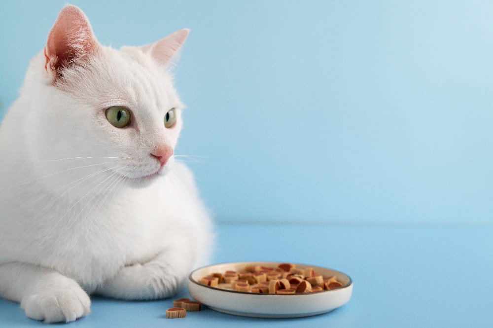 Dip your fingers in a small amount of puree → tap the cat’s nose/corner of the mouth → when it starts to lick, quickly hand over the food bowl.